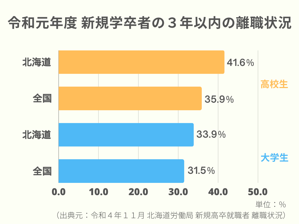 北海道における高卒者の3年以内の離職率は41.6%と全国平均を上回っており、「早期離職」が大きな課題になっています。